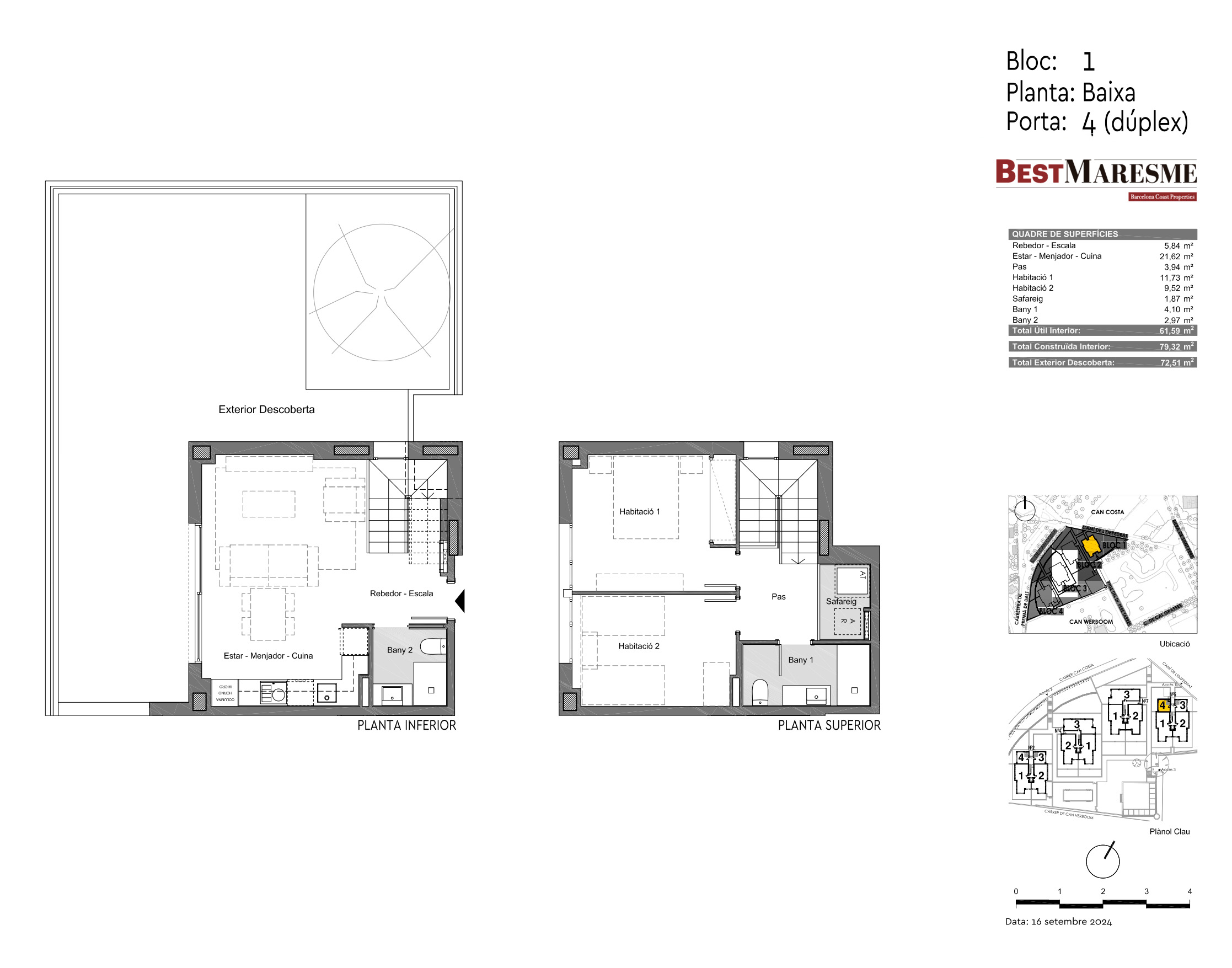 El conjunt residencial està format per habitatges de 2 i 3 dormitoris distribuïts en 4 blocs. Ofereix fantàstiques vivendes amb jardí situades a la planta baixa, pisos amb àmplies terrasses i dúplex amb terrassa solàrium amb espectaculars vistes. Els habitatges estan connectats mitjançant una zona comunitària, dissenyada acuradament per proporcionar el màxim benestar. En aquest espai hi ha una piscina envoltada d'àrees enjardinades que conviden a la relaxació i al gaudi a l'aire lliure. A més, el residencial compta amb garatges privats i traster.
