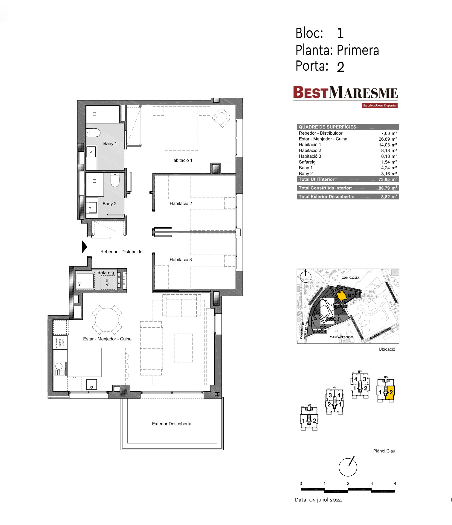 Amb un disseny contemporani i funcional que permet maximitzar lʻentrada de llum natural i optimitzar lʻespai. Els habitatges situats a primeres plantes disposen d'una distribució interior estratègica amb estades funcionals: ampli saló-menjador amb cuina que connecta amb el balcó, dormitori principal tipus suite, dormitori i bany secundari.