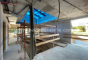 Un cop arribem a la primera planta ens trobem de banda la zona de dia i la zona de nit. Tot això a la mateixa planta i separat pel pati interior cobert. A la zona de dia ens trobem el saló, el menjador i la cuina en un mateix ambient. Tot l'espai està alimentat per uns grans finestrals que comuniquen amb el jardí, cosa que ens dona una sensació d'espai exterior-interior. La zona exterior assolellada compta amb el porxo a continuació del saló on ens trobem una zona de sopar i chill-out i un jardí amb piscina d'aigua salina.