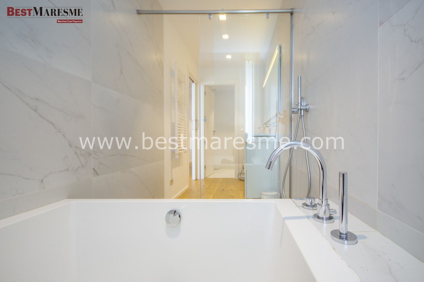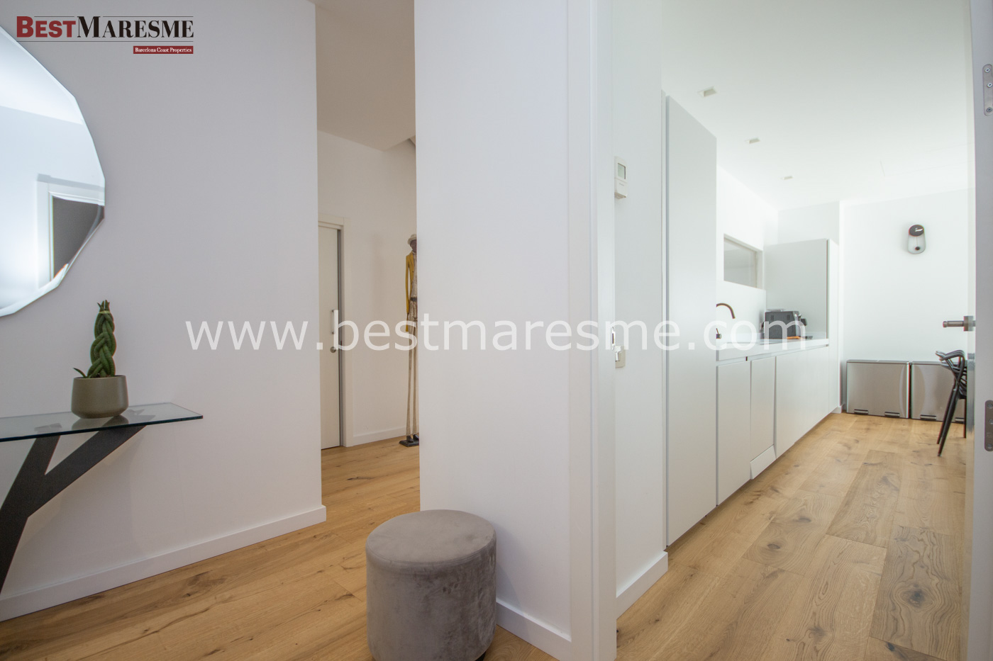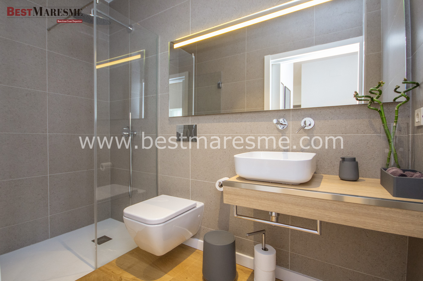 La cuina, moderna i totalment equipada, és un altre dels punts forts de la vivenda. Compte amb una gran illa central i office, superfícies de treball d'alta gamma i electrodomèstics integrats de primeres marques, ideal tant per al dia a dia. En aquesta planta també hi trobem un dormitori doble i un bany complet, ideal com a habitació de convidats o despatx.