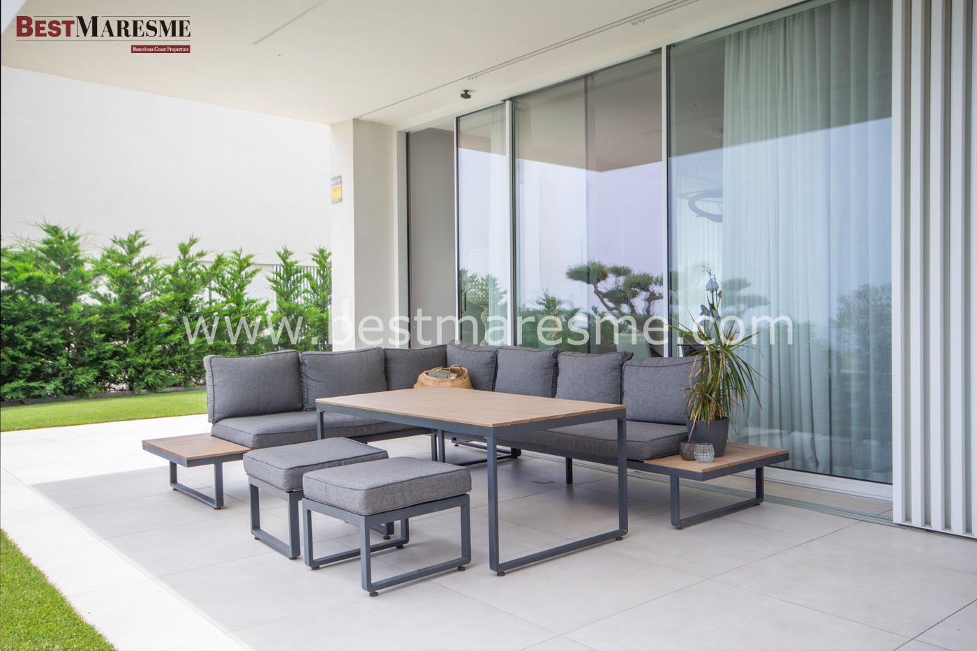 El jardí ha estat concebut com a espai per gaudir durant tot l'any. Dissenyat amb espècies autòctones de baix manteniment i gespa artificial de la millor qualitat, destaca per la seva estètica cuidada i funcionalitat. La joia de l´exterior és la piscina d´aigua salina, revestida amb un tipus de gresite que varia de tonalitat segons la llum del dia, creant un efecte visual únic i relaxant.