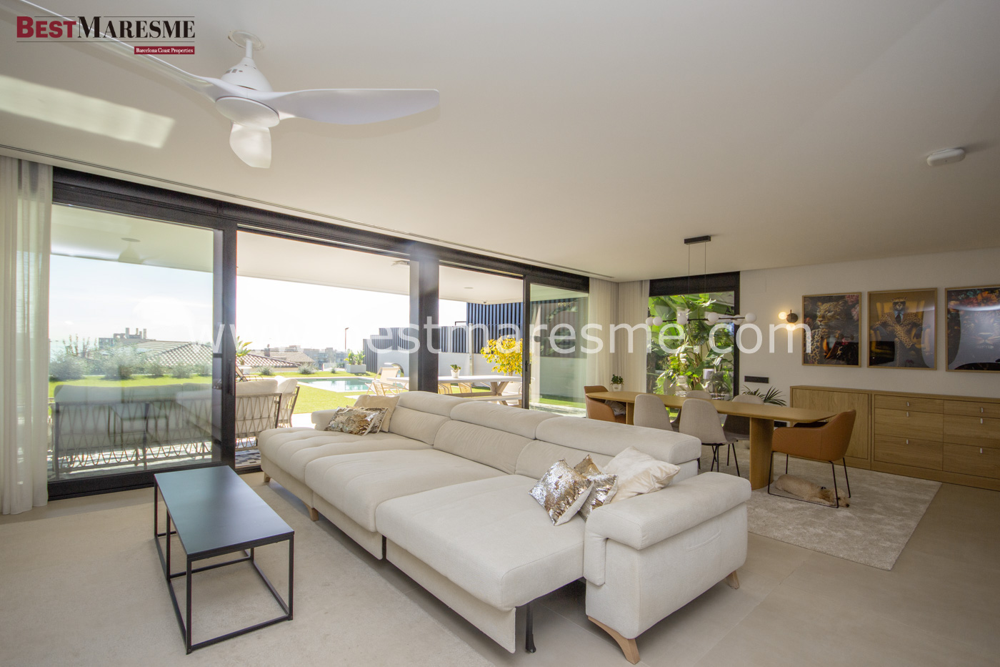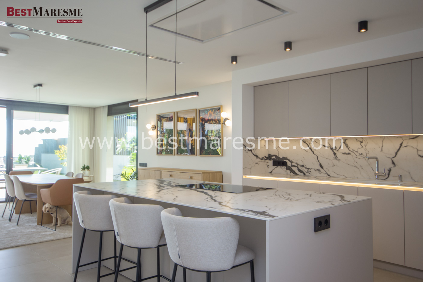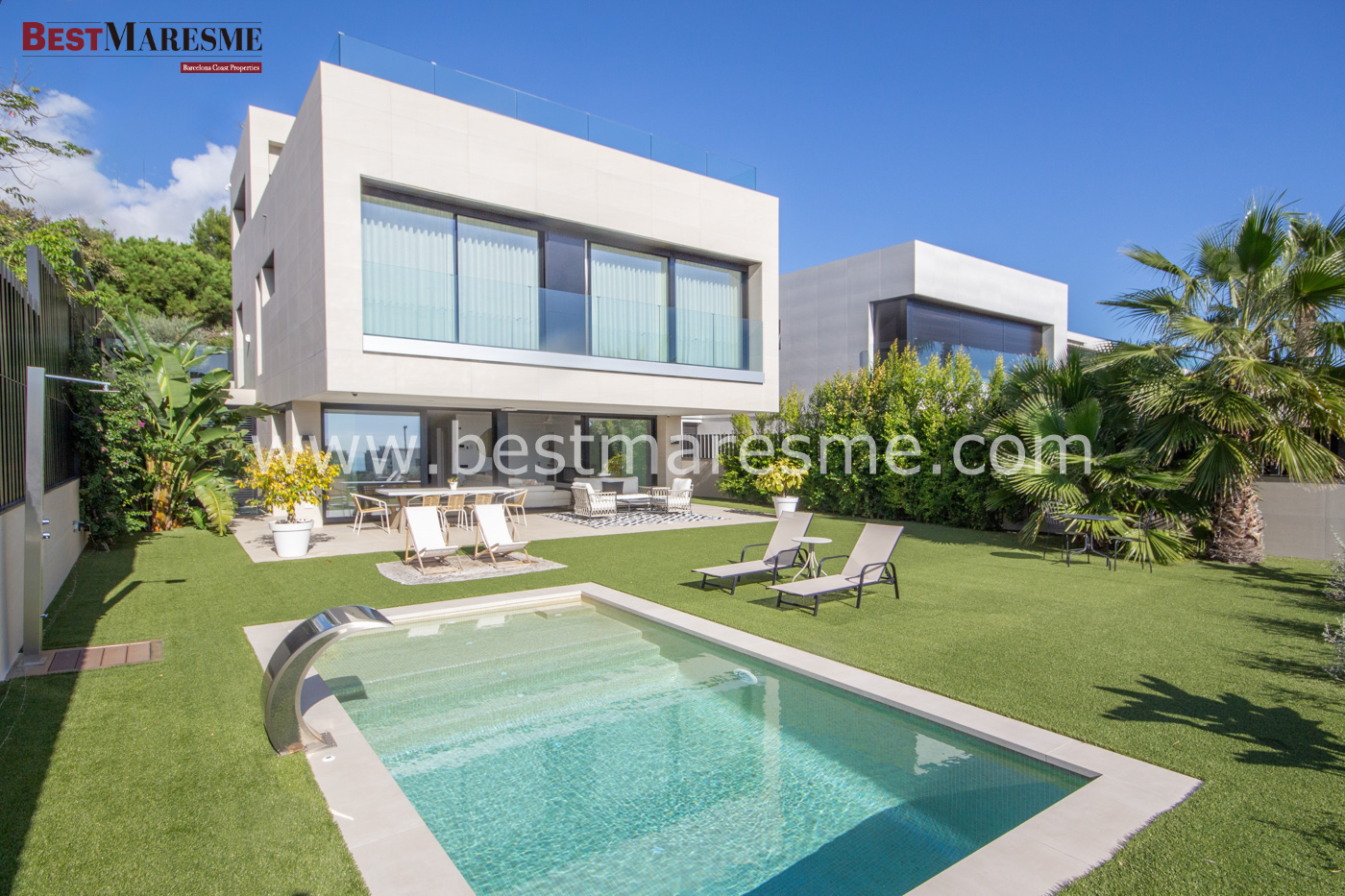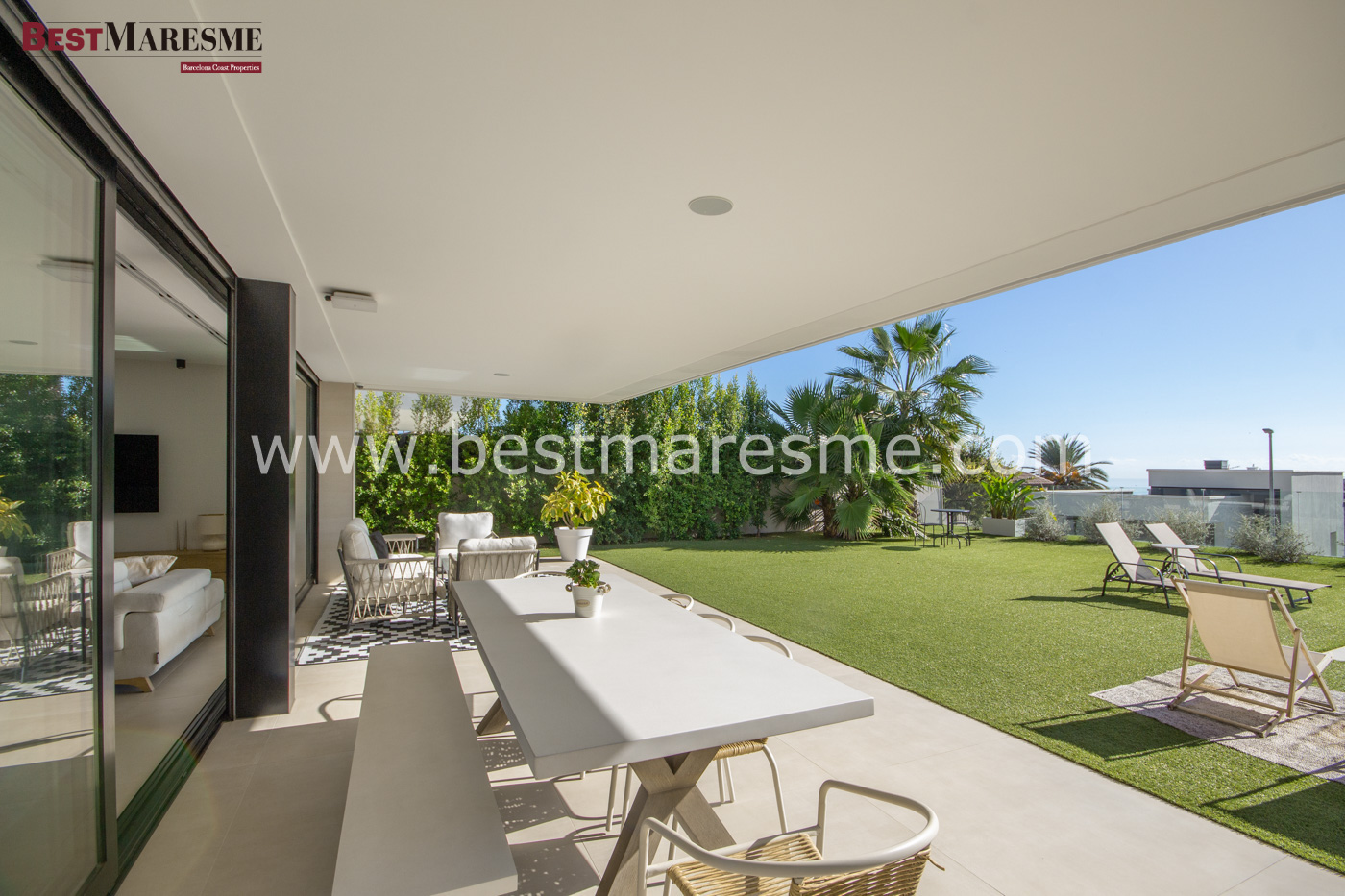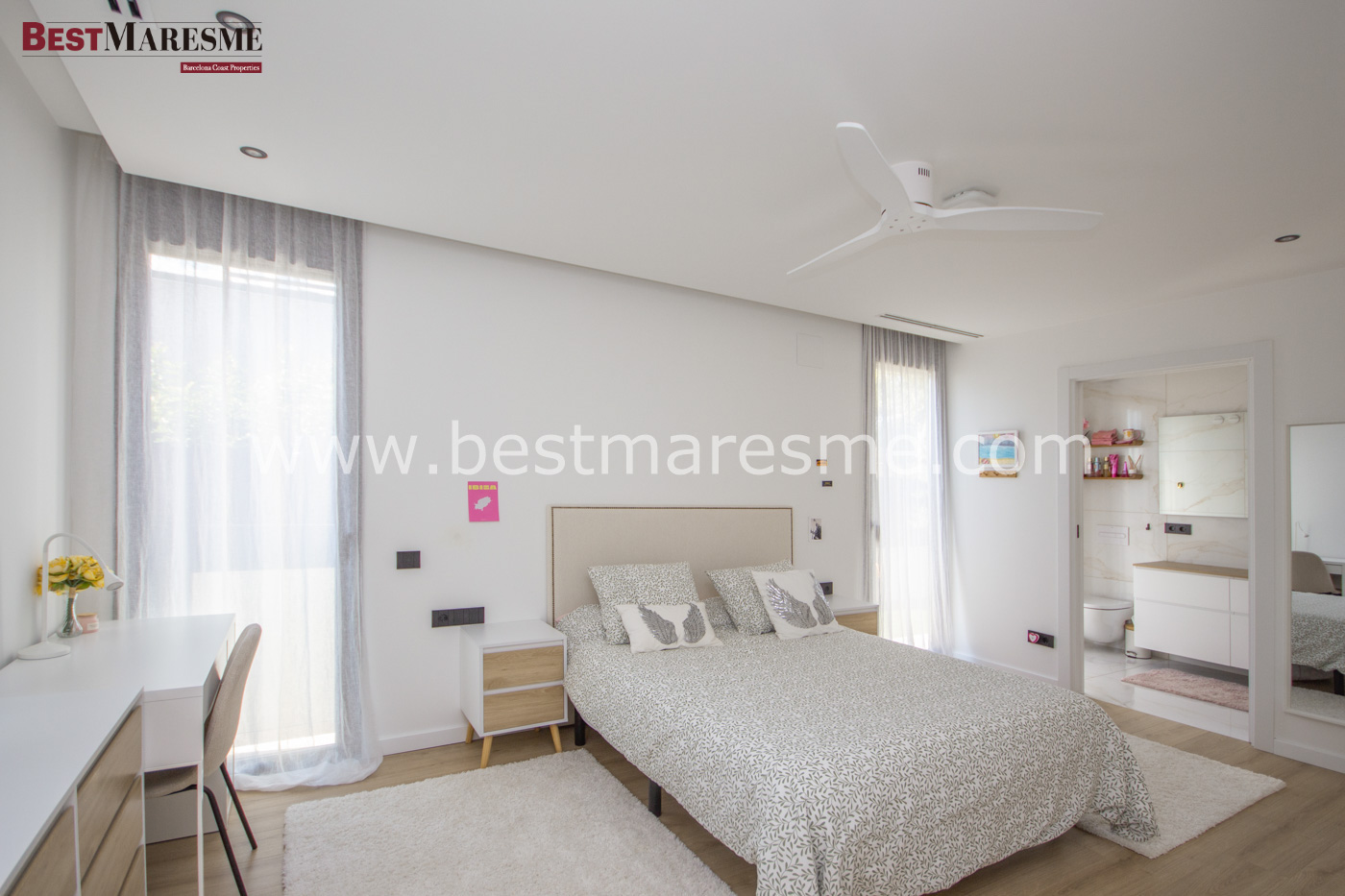 The interior has been designed to offer a sophisticated and functional living experience. High-end materials, impeccable finishes, and harmonious spaces create an atmosphere of contemporary elegance. The villa features four spacious double suites, each with its own full bathroom, and an impressive master suite with a dressing room and a custom-designed bathroom.