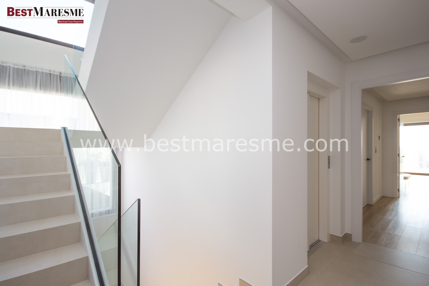 The elevator connects all floors, from the lower level to the highest part of the house, while the glass staircase, illuminated with elegant LED lighting, adds a distinctive architectural touch. The property has entrances from two different streets, guaranteeing convenience and privacy.