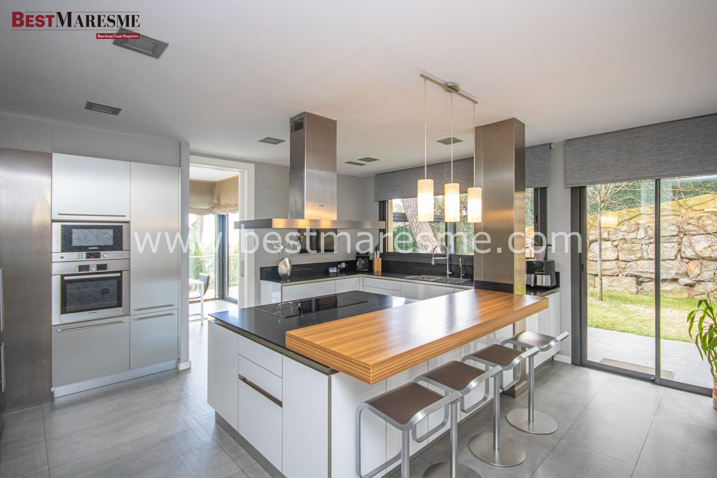 The property incorporates highly energy-efficient solutions, such as a geothermal heating and cooling system with three 120 m³ wells, underfloor heating, and ducted air conditioning with fan coils. It also features amenities that enhance comfort, including central vacuuming, double-glazed aluminum windows (Climalit type), adjustable blinds, a complete home automation system (lighting and blind control), reverse osmosis water filtration, a laundry chute directly to the utility room, and a covered barbecue area with a wood-fired oven. Located just 25 minutes from Barcelona and a short walk from the sea in Premià de Mar, this residence combines the exclusivity of a natural setting with proximity to all amenities, international schools, and a renowned culinary scene.